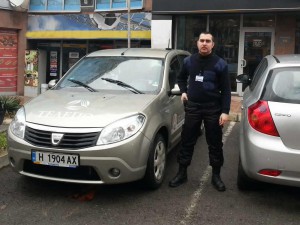 „В този един момент за части от секундата се развиха нещата. Гонитбата приключи. Нямаше как да го закопчея с белезниците и го хванах за ръката и врата да го връщам към колата. В същото време осъзнавам, че нямам телефон и не мога да се обадя на дежурния да прати патрула или да сигнализирам в Полицията. Спомням си, че докато вървяхме към колата заваля и задържания започна да се дърпа, измокрихме се, но не го пуснах. Пристигайки в автопатрула, уведомих дежурния, Полицията и ръководството на търговския център.Полицията реагира за 2-3 минути.”